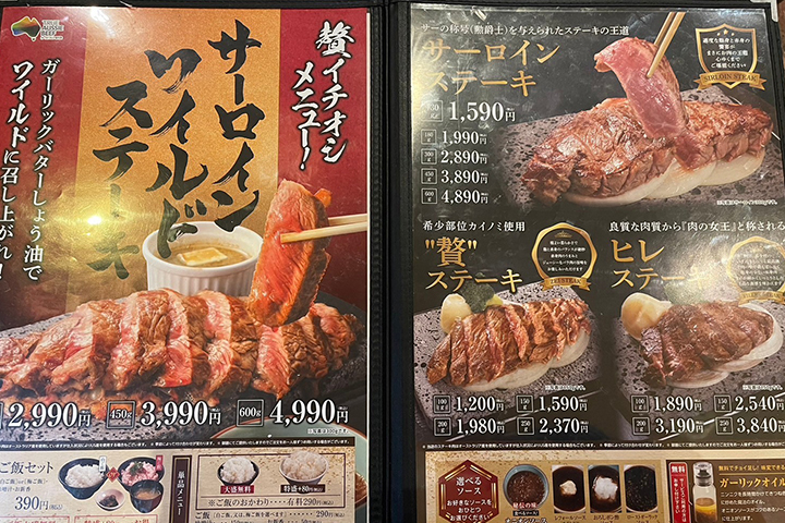 お好みのステーキを選んでランチやディナーにぜひどうぞ!