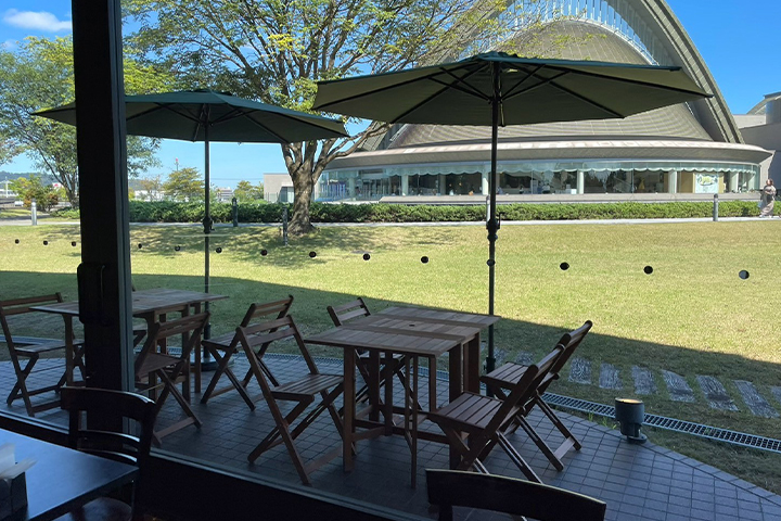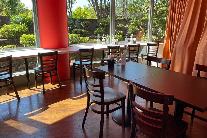 大きな窓から見える緑溢れる芝生がとても開放的で、お天気のいい日はテラス席もおすすめです☆