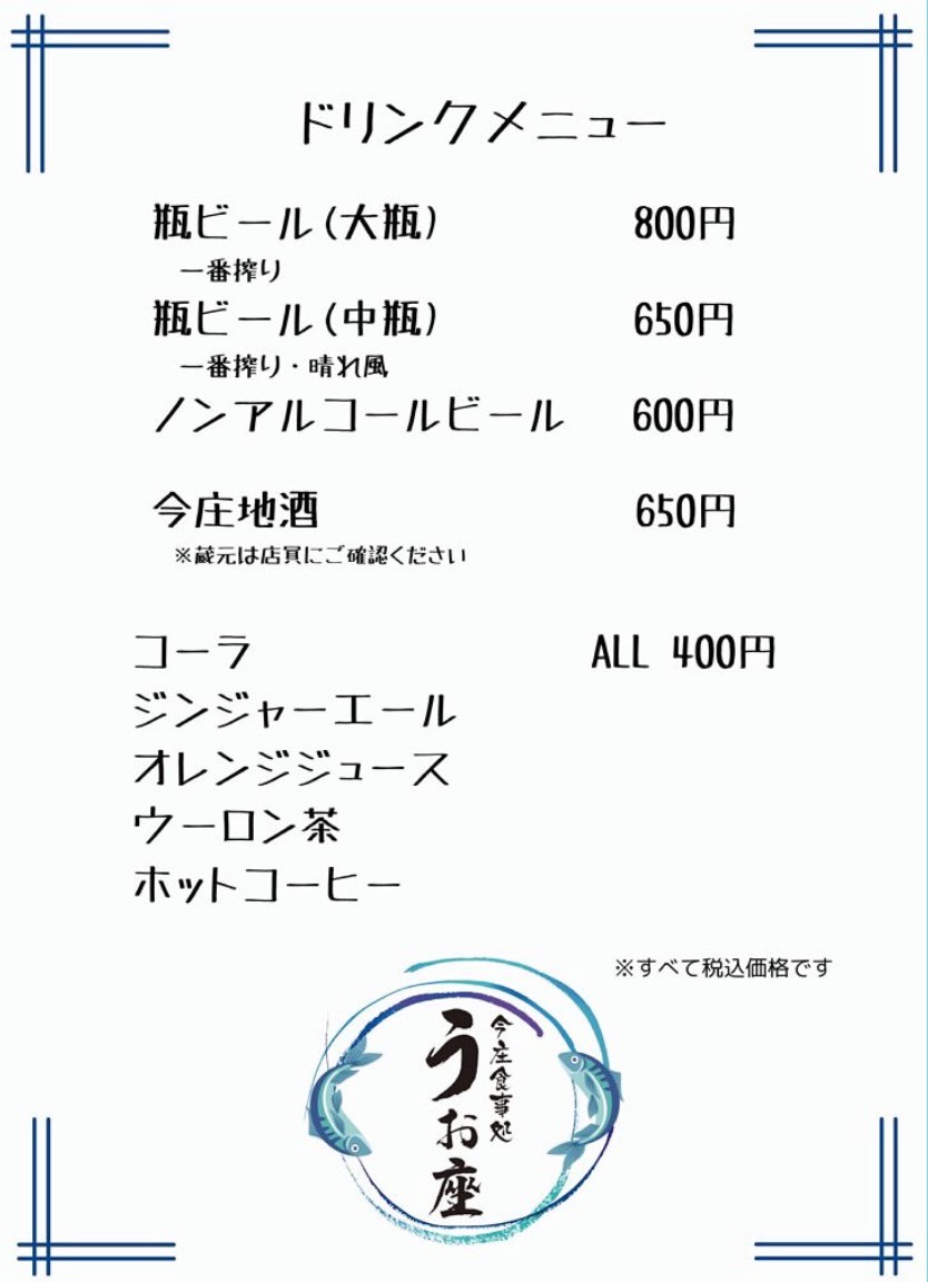 アルコールメニューには今庄地酒もあります。酒蔵がたくさん並んでいる地域なので、地酒が美味しいことは間違いなさそう。