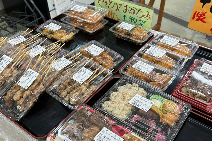 野菜やお米、お弁当やお肉、お菓子や調味料などなど、小さなスーパーのような感じの品揃えで、一通り食材が買えそうです。
