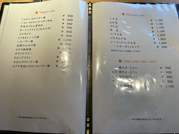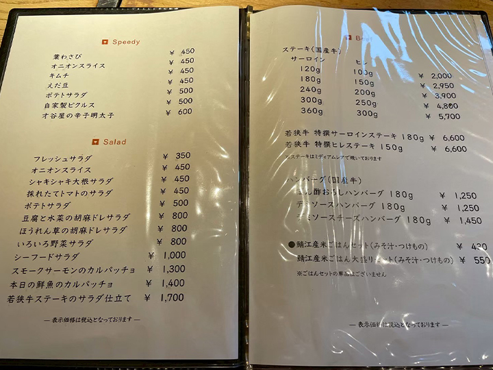 国産牛にこだわる自慢のステーキや、お好み焼き、焼きそばなど、メニューも豊富です。