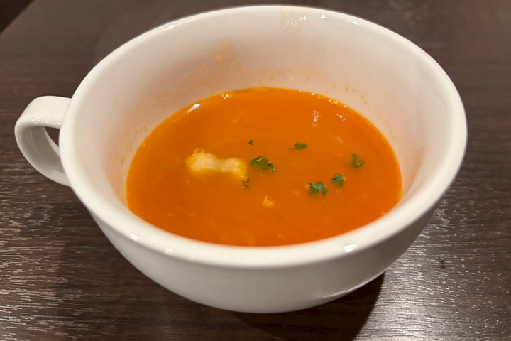 ランチを注文するともれなくサラダとスープが付いてきますが、席に着いた瞬間に直ぐにグラスに入った冷たいお茶を持ってきてくれました!
