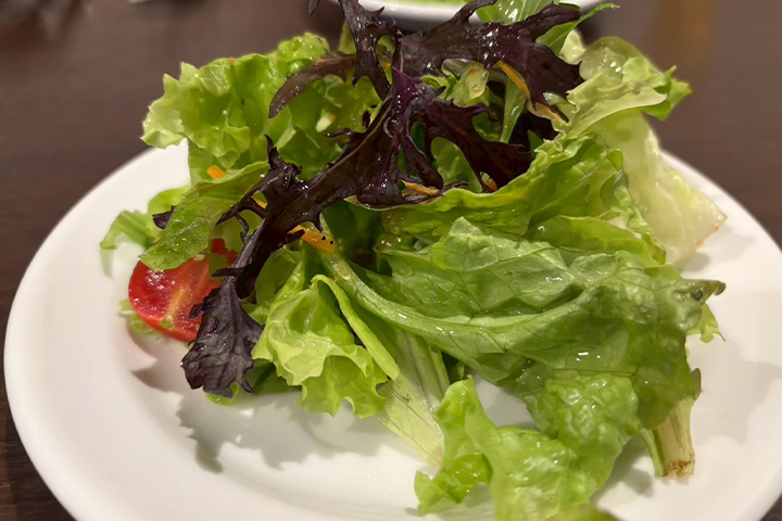 最初に運ばれたサラダはイタリアンドレッシングと新鮮な野菜が美味しかったです。