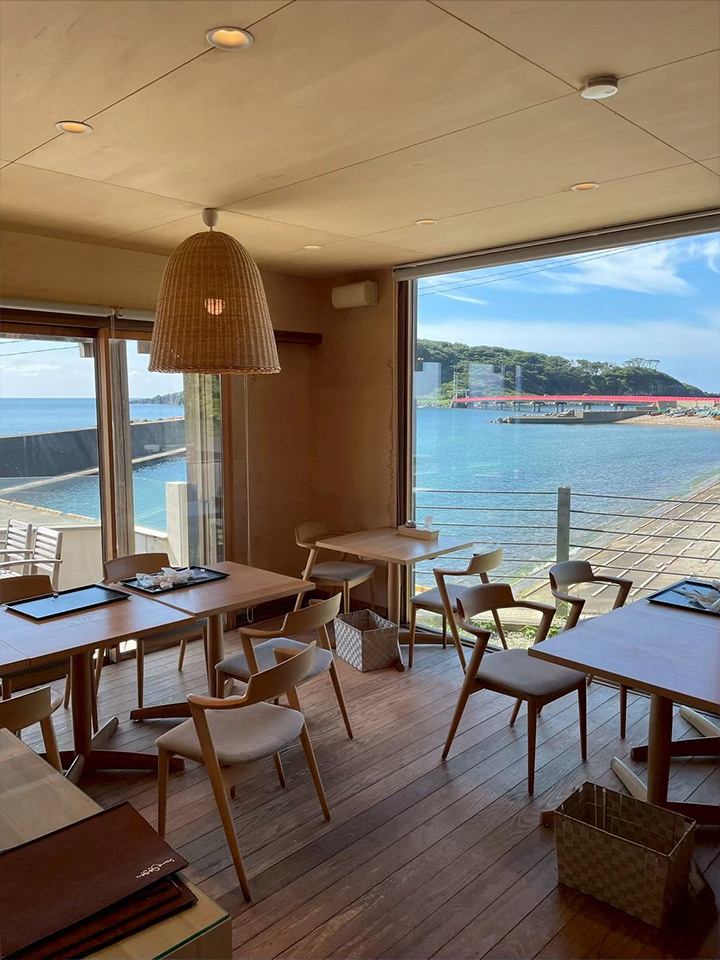 大きな窓からは海が広がり、開放感抜群!晴れた日にはテラス席もいいですね♪