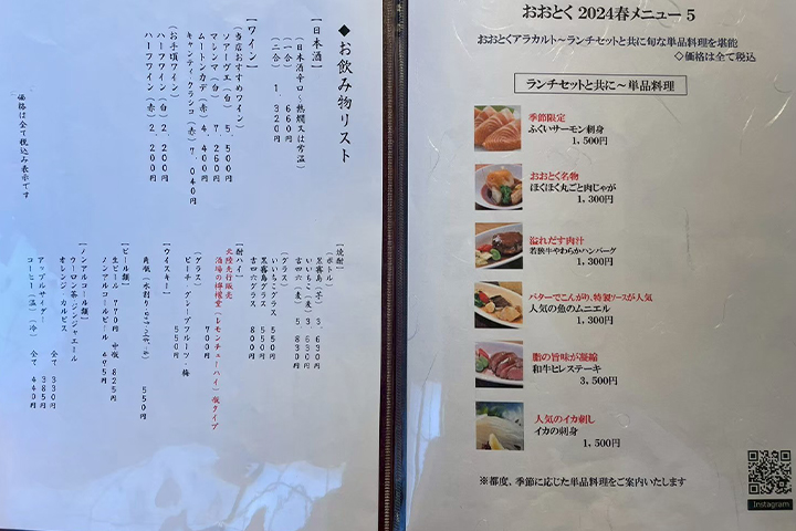 【海のレストラン おおとく】のメニュー