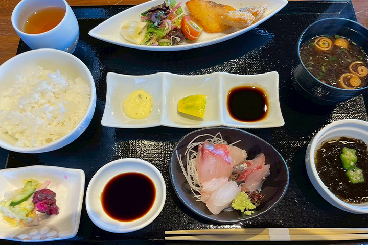 旬の魚のお刺身やフライもついていて、新鮮な海の幸を堪能できるランチです♪