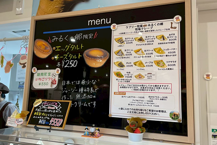 ソフトクリームのほかにも、パフェやクレープ、エッグタルトもありました!