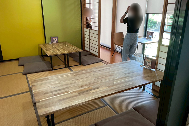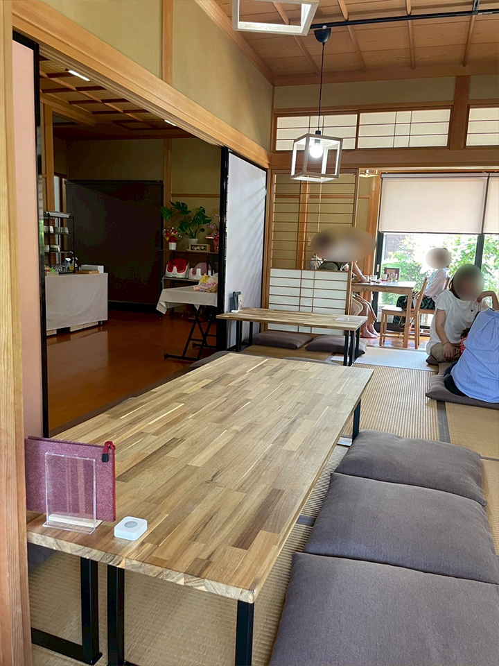 店内は畳みの温もりを感じる、落ち着いた空間。