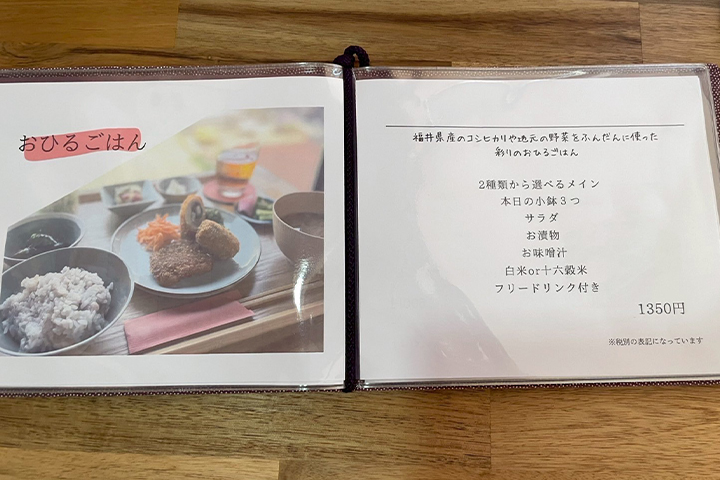 メニューは、地元産の野菜をふんだんに使った日替わりの定食が中心。