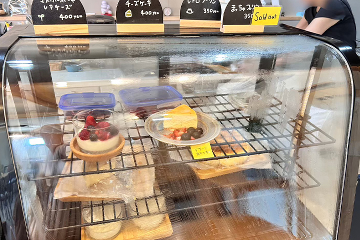 私はパン二つと、アイスカフェラテ、レアチーズケーキ を注文。