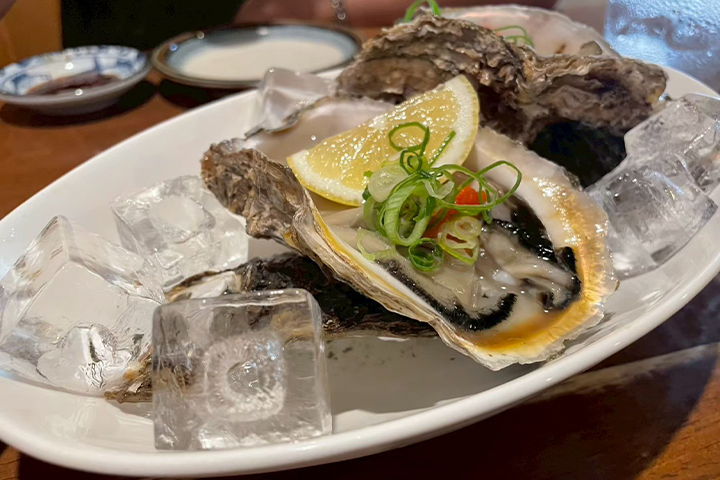 そしてこの岩ガキは、上にレモンともみじおろしとネギが乗っていて贅沢な1品です。
