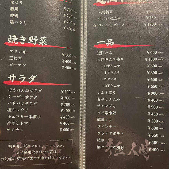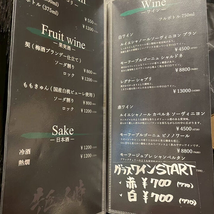 | 営業時間 | 火・金・土は11:30~14:00、18:00~24:00 水・木・日・祝日は18:00~24:00 |