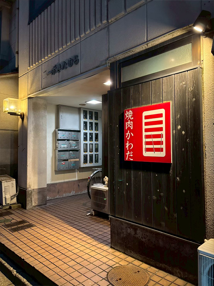 夜になると暖簾が灯り、焼肉好きの心をくすぐる香ばしい空気が漂います。