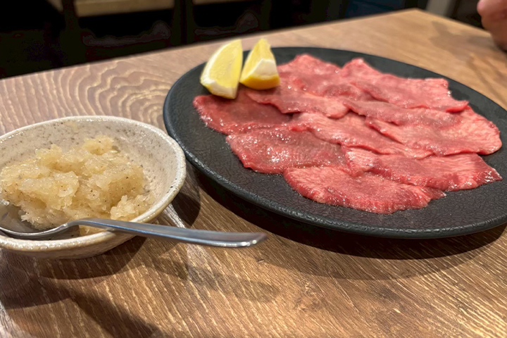 おすすめと噂の通り、ネギ塩タンは絶品!薄切りでありながら、食感を楽しめる厚さです。