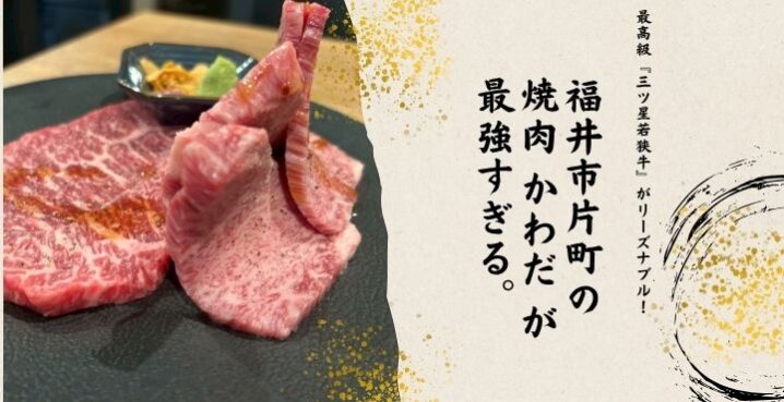 福井市の繁華街・片町に佇む「焼肉 かわだ」は、厳選された最高級和牛「三ツ星若狭牛」をリーズナブルに楽しめる名店。