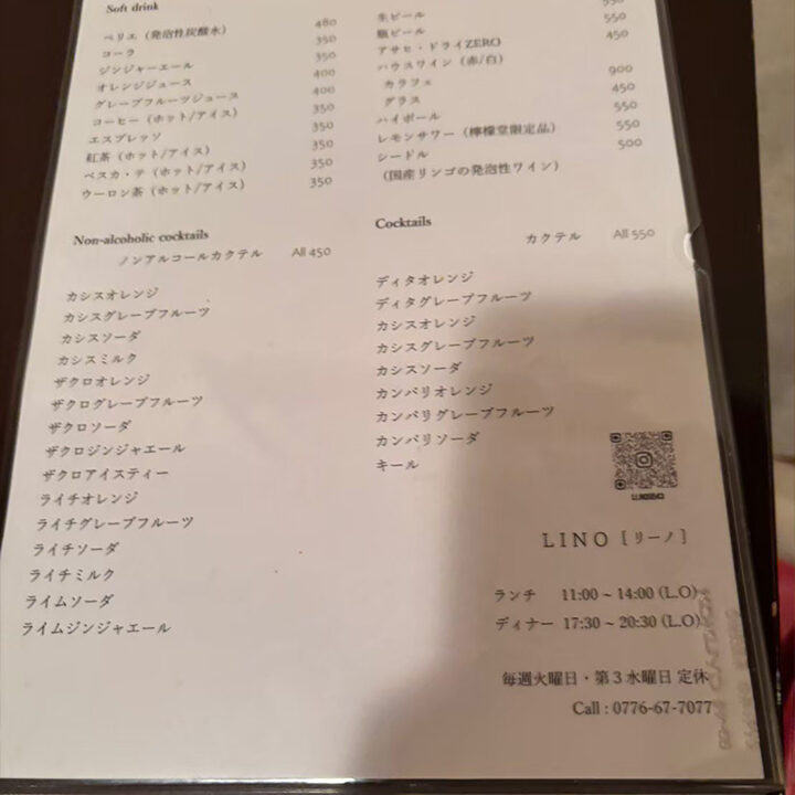 【LINO】のメニュー