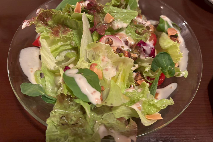 気まぐれサラダはシーザードレッシングがかけられていて、シャキシャキしたレタスやルッコラ、ミニトマトがマッチしていました。