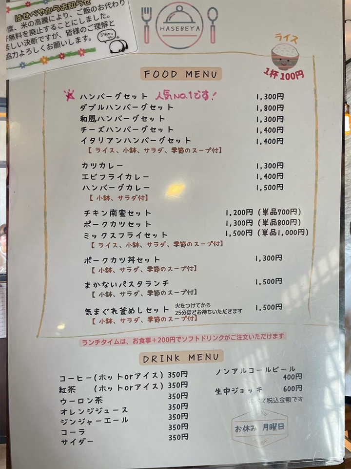 ほかにも、「まかないパスタランチ」や「気まぐれ釜飯セット」など、魅力的なメニューがいろいろありましたよ♪