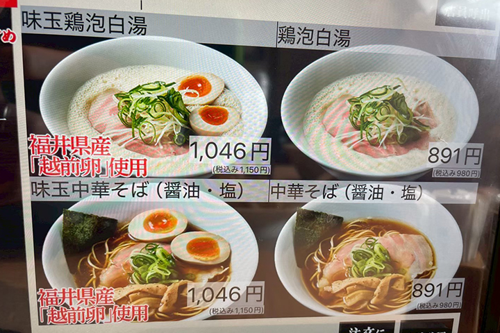 看板メニューは「鶏泡白湯ラーメン」シリーズ。