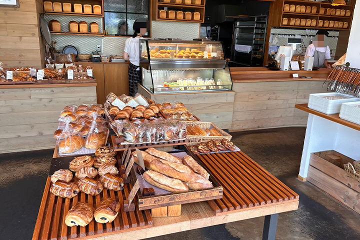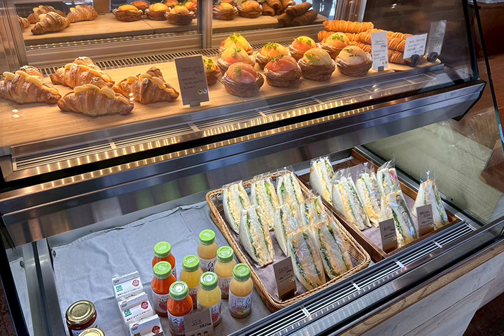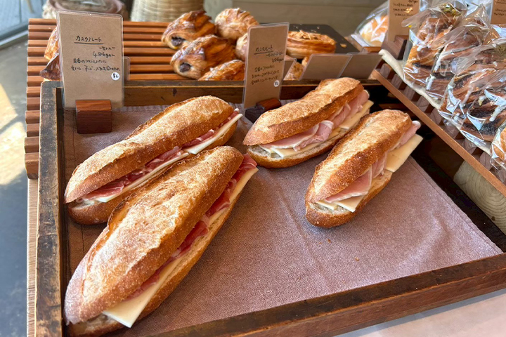 香ばしく焼かれたパンがたくさん。パンの種類も多く、サンドイッチ系はとてもボリューミーでした。