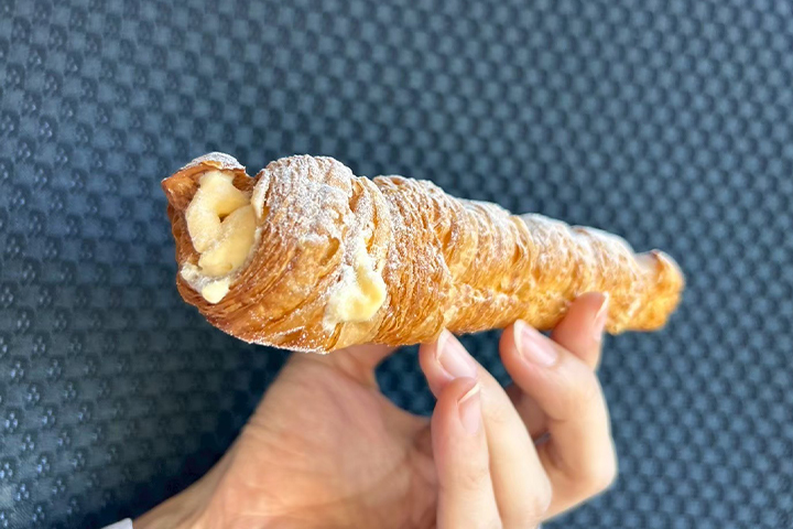 冷たいクリームが入っているのですが、これが最高。甘すぎない優しい味のカスタードクリームが、サクサクの生地と完璧な相性で、ペロリと完食。