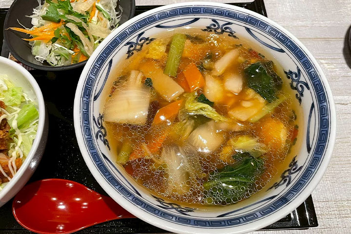 優しい醤油ベースのスープと麺がよく絡み、ミニサイズながら十分な満足感。