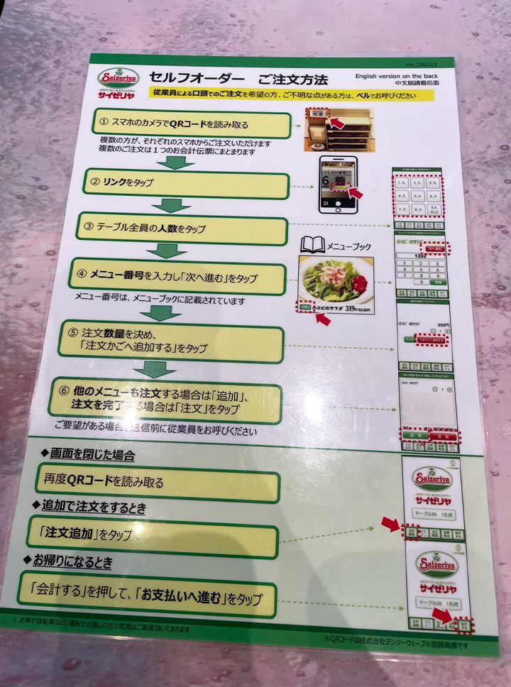 注文はスマホのカメラでQRコードを読み取って行う、セルフオーダーになっています。