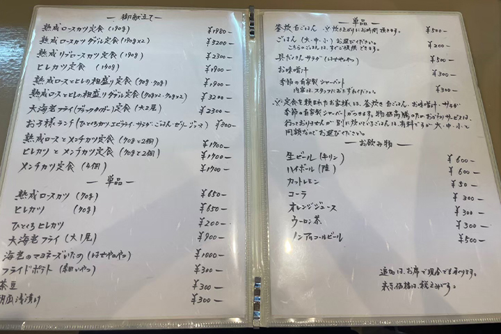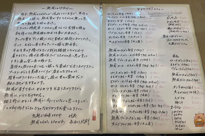 【熟成とんかつはせがわ】のメニュー