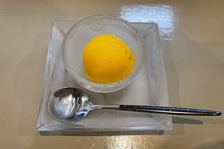 食後にはデザートのマンゴーシャーベットまでついて、大満足の定食でした!