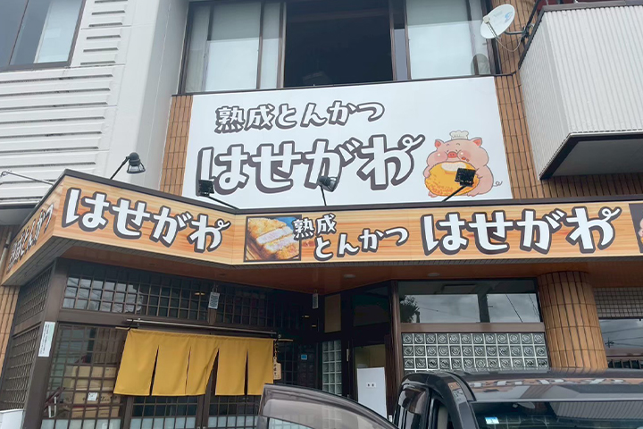 「熟成とんかつはせがわ」と大きく書かれた看板が目印。