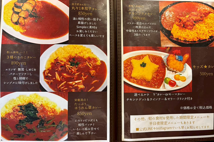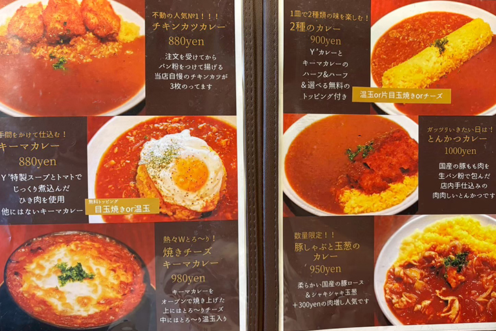 種類も豊富で普通のカレーから焼きカレーやカレーうどんまであり、更にデザートやキッズメニューもあるのでお子様連れには嬉しいですよね!