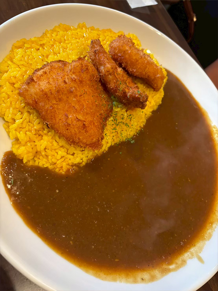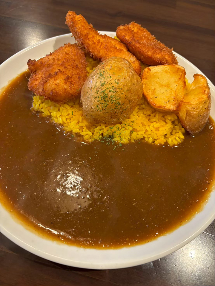 ・チキンカツカレーにフライポテトいも!をトッピングしたもの(普通盛り、中辛)