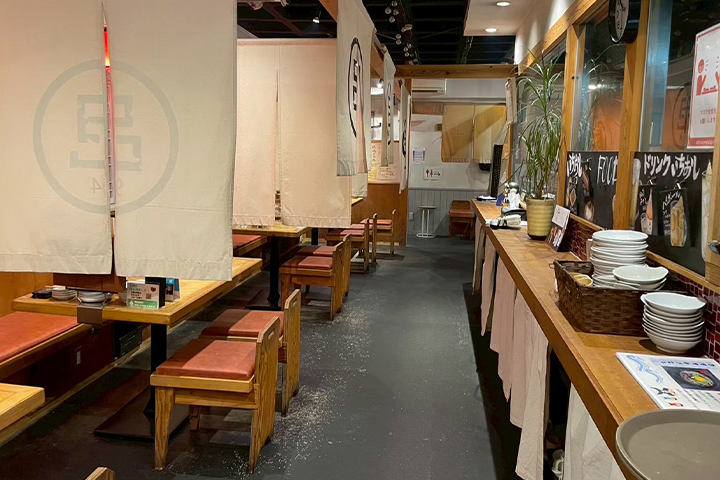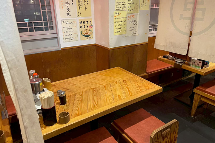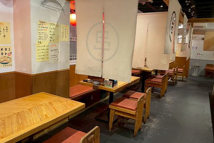 店内は木の温もりを感じるカウンター席やテーブル席があり、活気溢れる空間。