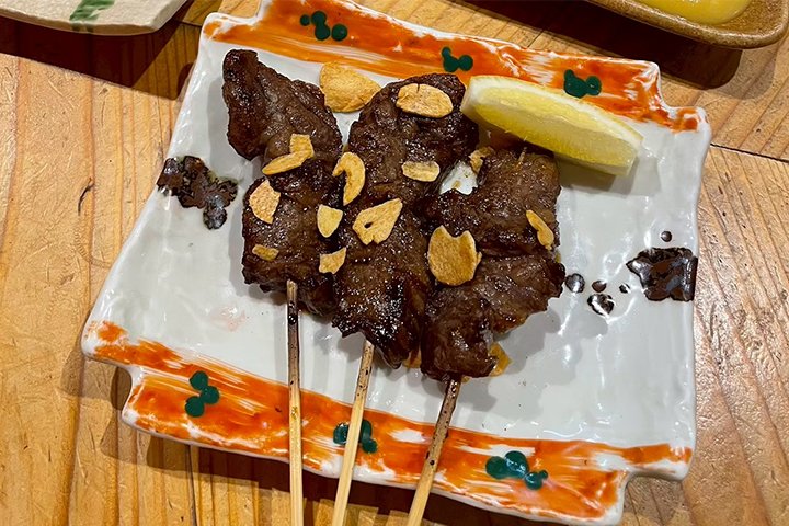 串メニューからもう一品選んだ「牛ハラミガーリックレモンペッパー」は、ガーリックチップとレモンの爽やかさが絶妙で、柔らかいハラミとの相性が抜群でした!