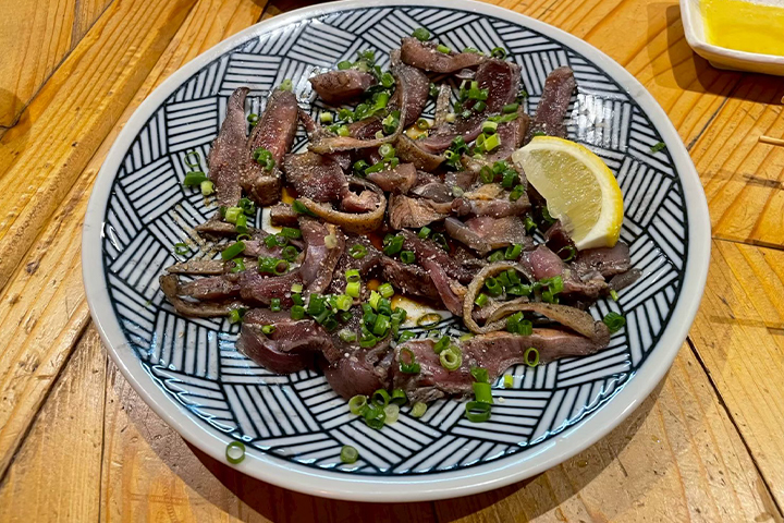 レアなお肉は噛むほどに旨みが広がりお箸が止まらない一品。ネギとレモンも相まって絶品でした!