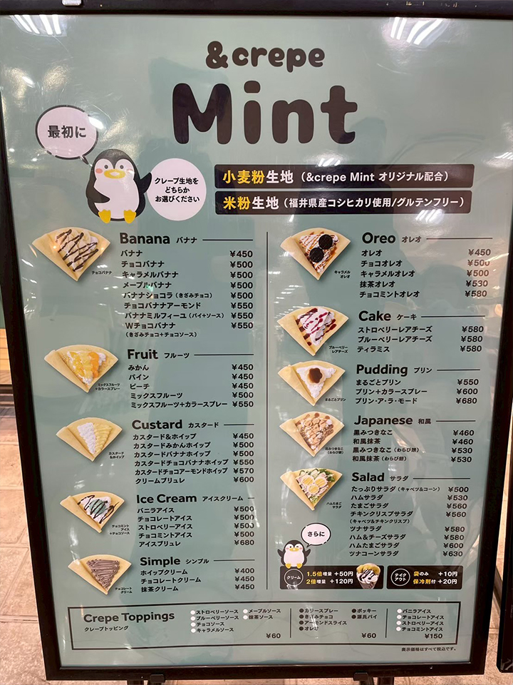 福井市のエルパ2階にある『&crepe Mint(アンドクレープ ミント)』に行ってきました!
