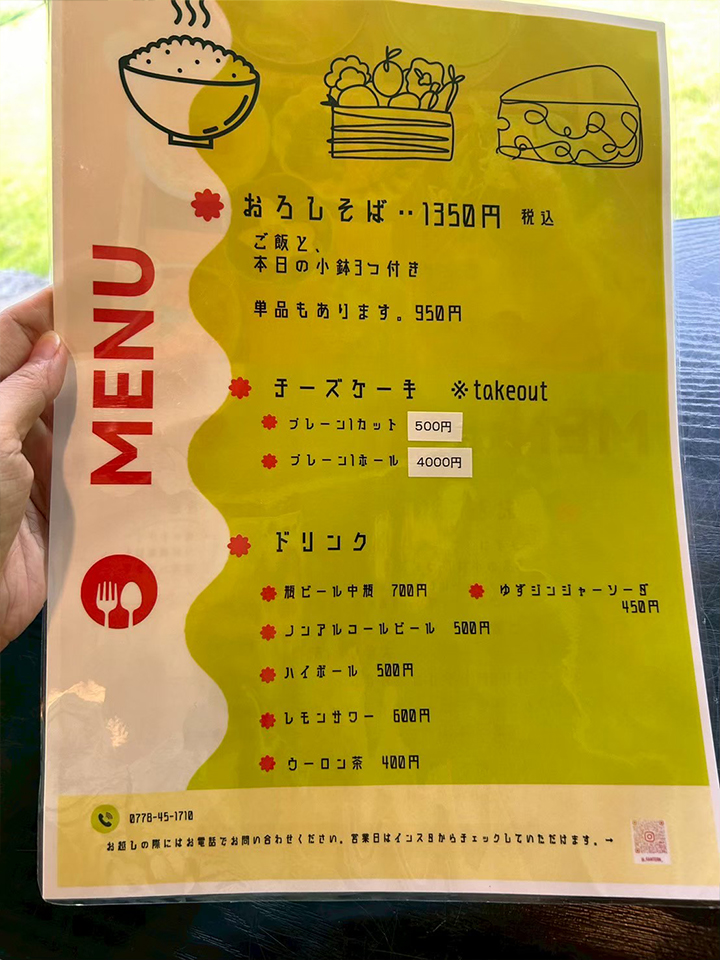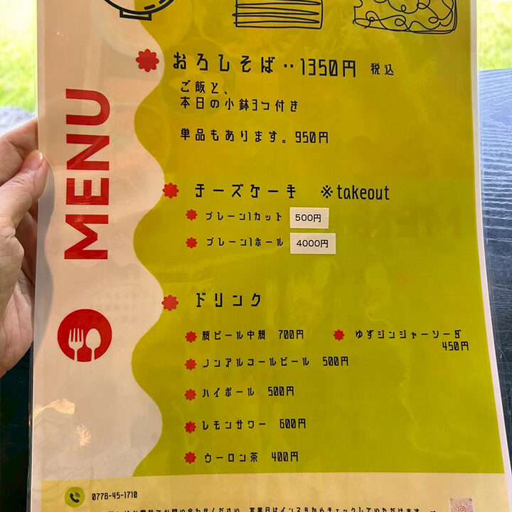 定食、おろしそば以外にチーズケーキとドリンクがあります。