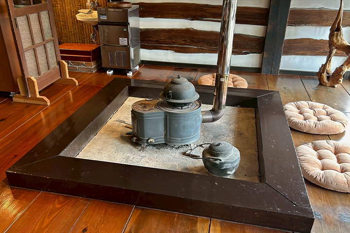 囲炉裏のある席や,ソファー席,椅子席、お庭からハピラインが見える席もあります。