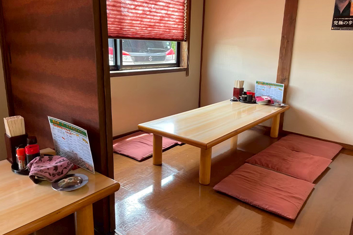 店内は座敷席やテーブル席があり、ゆったりくつろげる空間。