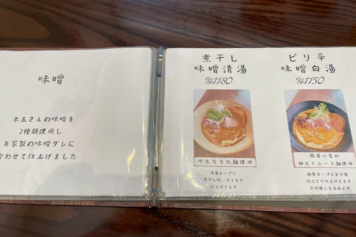メニューは鰹、鯖、昆布、野菜などを水素水でゆっくり仕込み、澄んだスープが特徴の「清湯(ちんたん)」や「とんこつ白湯」、「味噌」など、バリエーション豊かなラインナップ。