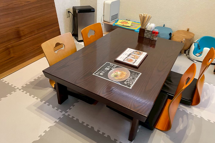 座敷にはお子様用の椅子やちょっとしたおもちゃもあるので、お子様連れでもゆっくりと過ごせそうです♩