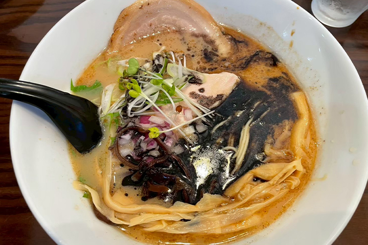 自家製のマー油(焦がしニンニク油)が香ばしく、スープの濃厚さにしっかりコクを加えてくれる一杯。