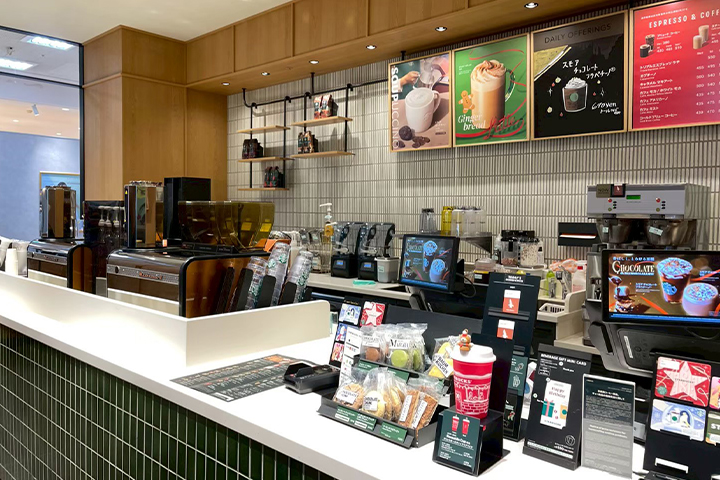 定番のコーヒーやラテに加え、期間限定のフラペチーノやフード、デザートまで多彩なメニューが揃っています。