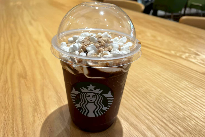今回は季節限定メニューの「スモア チョコレート フラペチーノ」をオーダー。