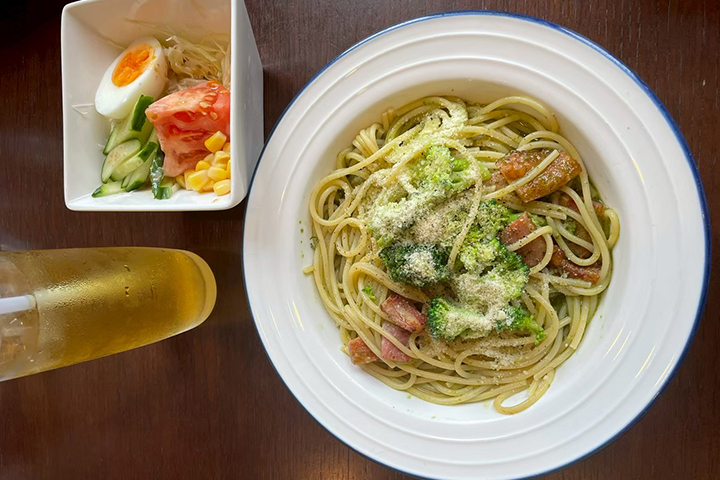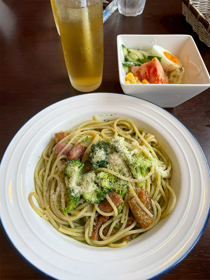 爽やかなバジルの香りが口いっぱいに広がるジェノベーゼソースは、濃すぎずちょうどよい味わいで、もちっとしたパスタと相性抜群。