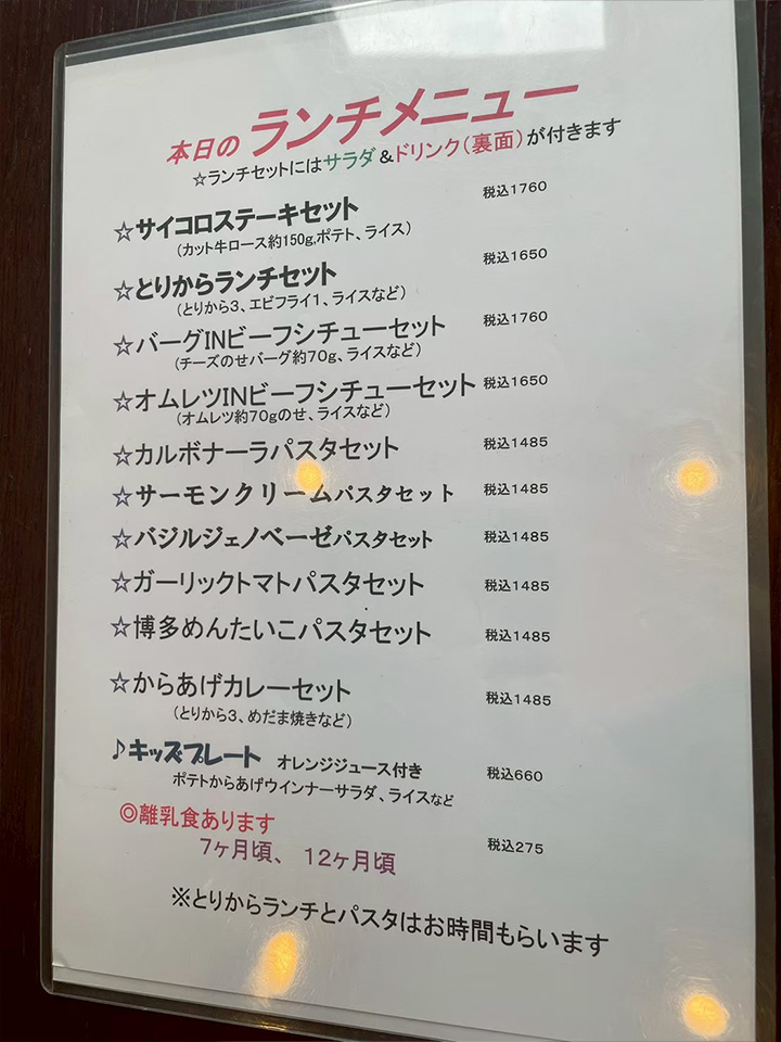 セットにできるランチプレートや、キッズ向けのメニューもあり、幅広い世代で利用しやすいラインナップ。