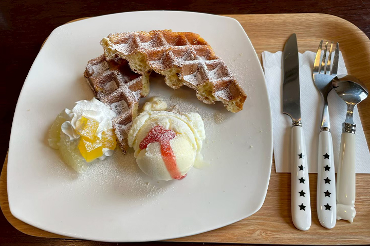 外はさっくり、中はふんわりのワッフルにバニラアイスとクリームが合わさって、デザートタイムにぴったりでした♪