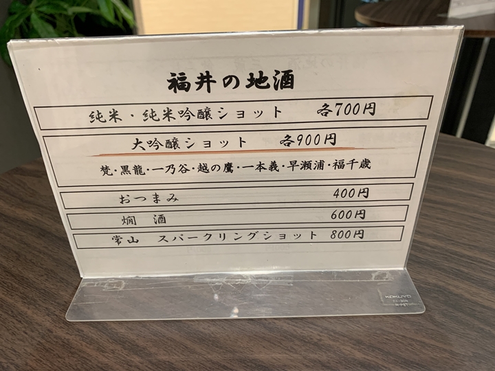私が色々と飲み歩いてきた中で、福井県内の全ての銘柄を置いてある店はここ以外に知らない。
