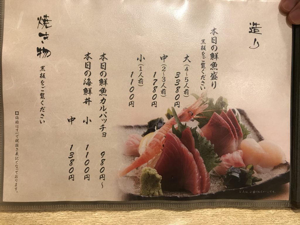 魚介厨房とあるようにお店の売りだと思うので、刺身は食べようと考えてました。