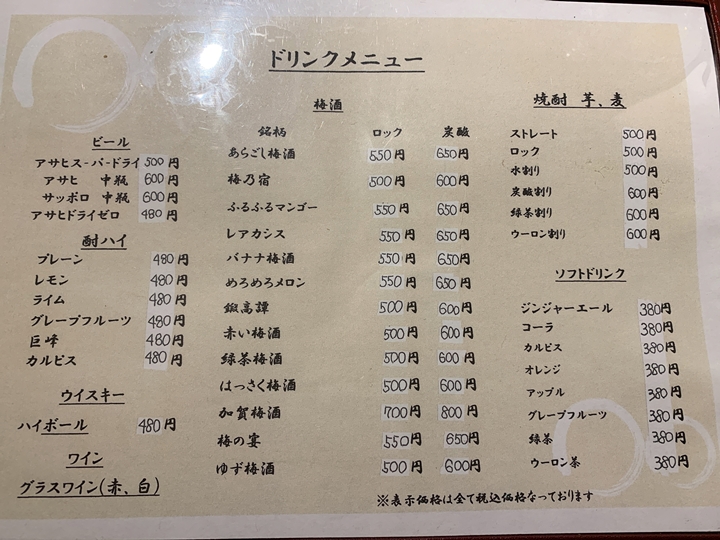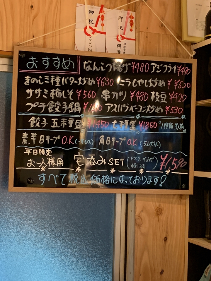 メニューはこのようになっています。ドリンク、餃子、小鉢3品が付いた宅呑みセットを注文しました。